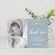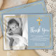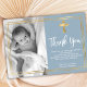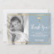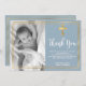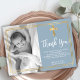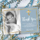Moderne Script Gold Cross Dusty Blue Taufe Dankeskarte