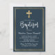 Moderne Script Gold Cross Navy Blue Boy Taufe Einladung