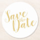Modernes Script Gold Wedding Save the Date Paper Untersetzer enthält Titel in modernen goldenen Skript-Schriftart auf weißem Hintergrund. Bitte beachten Sie: Die Details der Folie werden im Kunstwerk simuliert. Bei der Herstellung dieses Produktes wird keine Folie verwendet.