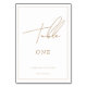 Schlichte und elegante goldfarbene Tischnummern, die auf beiden Seiten handindividuell gestaltet werden können. Personalisieren Sie jede Nummer mit Ihrem Namen/Event-Titel, Datum und Nummer. Fügen Sie jede Zahl einzeln in Ihren Warenkorb.