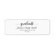 Modernes und elegantes Design bedruckt Moderne Kalligrafie Script Graduate Maßgeschneiderte Rücksendeadresse Label, die mit Ihrem Text angepasst werden kann. Bitte klicken Sie auf den Button "Anpassen" und verwenden Sie unser Design-Tool, um diese Vorlage zu ändern. Karo im Grafikdesign-Store für andere Produkte, die diesem Design entsprechen!