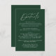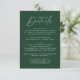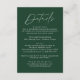 Einfache und elegante Hochzeitsdetails-Karte mit einem handgeschriebenen weißen Skript, kombiniert mit modernen Schriften vor einem dunkelgrünen Hintergrund. Personalisieren Sie die minimalistische Hochzeitskarte mit Ihren Hochzeitsdetails wie Empfang-Informationen, Hotel-Unterkünfte, Hochzeitswebsite, etc. Die schicke, waldgrüne Hochzeitskarte ist ideal für moderne Hochzeiten.