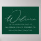 Elegantes Abschluss-Zeichen mit "Welcome" in einem weißen, modernen Kalligrafieschrift mit grünem Hintergrund (oder einer beliebigen Farbe). Personalisieren Sie das moderne Abschluss-Poster, indem Sie den Namen, den Namen der Schule und das Abschluss Jahr. Das Zeichen des grünen Abschlusses ist sowohl für Absolventen der Highschool als auch für Absolventen der Uni ideal.