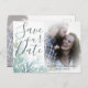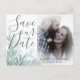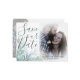 Ankündigen Sie Ihre Hochzeit mit dieser modernen Vorlage. Mit origineller, digitaler Aquarellfarbe aus Blattwerk und Grün in zartem Salbei grün, aquamarin und blau. Sie haben hier die Möglichkeit, Ihr eigenes Foto hinzuzufügen, das sowohl auf der Vorderseite als auch auf der Rückseite dieser Postkarte erscheint. Das Foto hat ein weiches, durchsichtiges weißes Überlagerungsstück, das seinem Design ein romantisches Gefühl verleiht. Alles was Sie tun müssen, ist Ihre persönlichen Daten hinzuzufügen und Ihre eigene Hochzeitsankündigung zu kreieren.