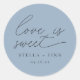 einfache moderne minimalistische Skript "Liebe ist süß" Hochzeitsblau Farbe Gunst Aufkleber.