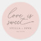 schlichte moderne Schrift "Liebe ist süß" Hochzeitsaufkleber in rosa Rosa.