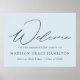 Elegantes Abschluss-Zeichen mit "Welcome" in einem modernen, schwarzen Kalligrafieschrift mit hellblauem Hintergrund (oder einer beliebigen Farbe). Personalisieren Sie das moderne Abschluss-Poster, indem Sie den Namen, den Namen der Schule und das Abschluss Jahr. Das hellblaue Abschluss-Schild eignet sich sowohl für Absolventen der Highschool als auch für Absolventen der Uni.