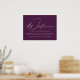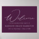 Elegantes Abschluss-Zeichen mit "Welcome" in einem weißen, modernen Kalligrafieschrift mit lila Hintergrund (oder einer beliebigen Farbe). Personalisieren Sie das moderne Abschluss-Poster, indem Sie den Namen, den Namen der Schule und das Abschluss Jahr. Das lila Abschluss-Schild eignet sich sowohl für Absolventen der Highschool als auch für Absolventen der Uni.
