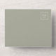Diese schlichte, moderne Einladung zur Hochzeit mit weißem Text auf einem schlauen grünen Hintergrund. Fügen Sie die Namen der Braut und Bräutigam in stilvoller Handschrift Kalligraphie und die Details in sans serif Schriftart. Die abnehmbare UAWG zeigt einen grünen Text auf weißem Hintergrund. Fügen Sie Ihre Rücksendeadresse in Weiß auf der sage grünen Außenklappe und Rückseite der UAWG.