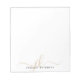 Personalisiertes modernes Notizblock mit einfachen kalligraphischen Schriftzeichen oder Monogramm und Namen in Schwarz und Gold. ÄNDERUNGEN: Der Textstil, die Farbe, die Schriftgröße und die Platzierung können geändert werden, indem Sie im Bereich PERSONALIZE für ein benutzerdefiniertes Aussehen auf CUSTOMIZE FURTHER klicken oder indem Sie den Designer über Zazzle Chat oder makeitaboutyoustore@gmail.com kontaktieren, wenn Sie dieses Design modifizieren möchten, ein anderes Produkt erwerben möchten oder Gegenstände koordinieren möchten.