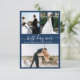 Moderne Script Navy 3 Foto Collage Wedding Dankeskarte
