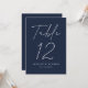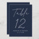 Einfache, moderne Hochzeitskarten mit "Tischnummer", die in einem handgeschriebenen, weißen Skript mit mariniertem Hintergrund (oder einer von Ihnen gewählten) angezeigt werden. Um die Hochzeitskarten der Marine zu bestellen: Fügen Sie Ihren Namen, das Hochzeitsdatum und die Tischnummer hinzu. Jede Nummer muss individuell in Ihren Warenkorb aufgenommen werden. Nachdem Sie alle Tischnummern in Ihren Warenkorb gelegt haben, checken Sie einfach aus und warten Sie, bis Ihre wunderschönen Tischnummern ankommen!