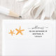 Ein modernes, orangefarbenes personalisiertes Rücksendelabel. Dieses benutzerdefinierte Adressetikett verfügt über einen eleganten Kalligraphie-Script-Schriftart und zwei Seesterne.