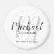 Fügen Sie Ihrer Hochzeit eine persönliche Touch mit einem personalisierten Trauzeugen Magneten hinzu. Dieser Magnet zeichnet sich durch den Namen der personalisierten Trauzeugen im Stil von grauem, modernem Script-Schriftart und Monogramm im hellgrauen, modernen Script-Schriftart-Stil aus, als Hintergrund mit Titel und Hochzeitdatum in grauem, modernem Sans-Serif-Schriftart auf weißem Hintergrund. Auch perfekt für Trauzeuge, Brautvater und mehr.