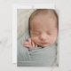 Eine einfache, moderne Taufeinladung enthält eine weise grüne Karte mit weißer Typografie, um Ihre Schlüsseldetails wie den Namen, das Datum, die Uhrzeit und den Ort der Taufe, den Empfang und die UAWG zu personalisieren. Auf der Rückseite befindet sich ein Foto Ihres Babys