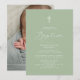 Moderne Script Sage Green Baby Foto Taufe Einladung