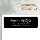 Dieses einfache, moderne Ehering-Adressetikett zeigt die Namen des Paares in einem stilvollen weißen Skript, mit zwei Zeilen für die Adresse unten in weißen Sans Serif-Schriftart auf einem schwarzen Hintergrund.
