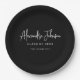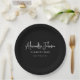 Moderne Trendy Script Graduation Party Napkin Schwarz und Weiß Elegant Minimalistisch Design Feiern Sie Ihren Absolventen mit diesem modernen trendigen Drehbuch-Teller mit einem stilvollen, weißen Hintergrund und eleganten, stilvollen schwarzen Drehbuch. Das minimalistische Design eignet sich perfekt für eine stilvolle und zeitgenössische Abschluss-Feier. Personalisieren Sie ganz einfach mit unseren Vorlagen, fügen Sie den Namen Ihres Absolventen, die High School oder Uni, und das Unterrichtsjahr in Sekunden. Ideal für Abschlussfeiern, offene Häuser und unvergessliche Events. Dieses exklusive Design, das von der Künstlerin Catherine Sweetman entworfen wurde, bringt moderne Eleganz in Ihre Tischdekoration. Ideal für diejenigen, die eine saubere, elegante Ästhetik mit persönlicher Touch suchen.