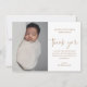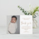 Dieses moderne Foto Baby-Taufe Dankeschön-Karte verfügt über handgeschriebene kalligraphische Skript danke Ihnen Kunst, die beweglich ist und Sie können leicht ändern die Farbe von, ein vertikales Foto und bearbeitbaren Text. Klicken Sie auf die Schaltfläche Bearbeiten, um dieses Design anzupassen.