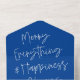 Dieses lustige Urlaubsfoto-Design zeichnet sich durch einen hellblauen Hintergrund mit einem modernen, weißen Kalligraphieskript-Gruß und einem horizontalen Foto aus. Der Gruß sagt "Merry Everything & Happiness Always". Auf der Außenseite der Karte ist Ihre Rücksendeadresse und ein weiterer personalisierter Gruß. Wenn das Foto als Keepsake zerrissen wird, wird der Empfänger auch auf der Rückseite des Fotos seinen Gruß bekommen. Wie Sie sehen, ist es notwendig, Umschläge zu bestellen!!
