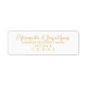 Moderne Script White and Gold Wedding Invitation Suite : Rücksendeadresse Label mit Braut- und Bräutigernamen in modernem goldfarbenem Script-Schriftart mit Adresse in goldenen, modernen Sans Serif Schriftart auf weißem Hintergrund. Bitte beachten Sie: Die Details der Folie werden im Kunstwerk simuliert. Bei der Herstellung dieses Produktes wird keine Folie verwendet.