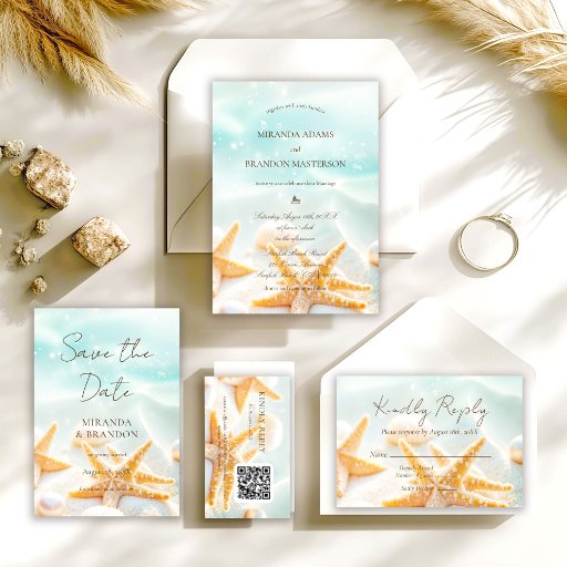 Feiern Sie Ihre Liebesgeschichte am Meer mit dieser modernen QR-Code-Seestern-Schalen-Sand-Ozean-Strand-Hochzeitseinladung. Eine perfekte Mischung aus Küstenromantik und moderner Zweckmäßigkeit. Diese für Paare, die eine Strandhochzeit oder eine ozeanisch inspirierte Feier planen, entworfene Einladung zeigt zarte Seesterne, weiche Sandtexturen und subtile Muschel-Akzente, die den friedlichen Charme der Küste schön einfangen. Das elegante Layout kombiniert natürliche Küsten-Elemente mit raffinierter Typografie und schafft eine anspruchsvolle, aber entspannte Ästhetik, ideal für Hochzeiten im Ausland, tropische Zeremonien, Strand-Segenssprüche oder Sonnenuntergangs-Strandempfänge. Der integrierte QR-Code ermöglicht es den Gästen, per einfacher Scanung online zu antworten, Ihre Hochzeits-Website aufzurufen, Reiseinformationen abzurufen oder Ihre Geschenkeliste zu erkunden - und verbindet zeitlose Strandeleganz mit moderner Funktionalität. Vollständig anpassbar können Sie Namen, Hochzeitsdatum, Veranstaltungsort, Formulierung und QR-Code-Ziel anpassen, um Ihre einzigartige Feier perfekt widerzuspiegeln. Auf Premium-Materialien mit außergewöhnlicher Klarheit gedruckt, bietet diese Einladung ein poliertes und professionelles Finish, das den Ton für Ihre unvergessliche Hochzeit am Meer setzt. Perfekt für Paare, die eine