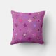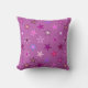 Kopfkissen in einem modernen Muster aus funkelnden Sternen in juwelenfarbenen Amethysttönen lila, rosa, magenta und beige, in Komplementärfarben umrissen, auf einem weichen violetten lila Hintergrund