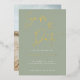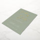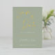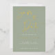 Moderne Seite Green Gold Foil Pressed Kalligrafie Skript Hochzeit Speichern Sie die Date Card mit echter Goldfolie. Ändern Sie die Folienfarbe in Rose Gold oder Silber, wenn Sie möchten, und laden Sie Ihr eigenes Bild der Wahl für die Rückseite. Verwenden Sie das Design-Tool, um die Hintergrundfarbe oder Textfarbe dieser Hochzeit zu ändern speichern Sie die Datumskarte.