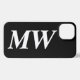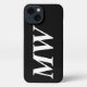 Individuell, personalisieren Monogramm, Initialen Buchstaben Schwarz-Weiß einfachen minimalistischen modernen eleganten klassischen schicken stilvollen iPhone Gehäuse. Anpassbare weiße Serifenfett kursiver Schriftart-Text, schwarzer schlichter Hintergrund.