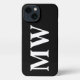 Individuell, personalisieren Monogramm, Initialen Buchstaben Schwarz-Weiß einfachen minimalistischen modernen eleganten klassischen schicken stilvollen iPhone Gehäuse. Anpassbarer weißer Text, schwarzer schlichter Hintergrund.
