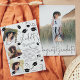 Sie hat es geschafft! Feiern Sie den Absolventen mit dieser einfachen und coolen modernen Schwarz-Weiß-minimalistischen 4-Foto Abschluss Einladung ( vertikal) mit trendiger Skriptkalligraphie, mit Graduationskappe und Konfetti.