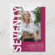 Moderne 70. Geburtstagsfeier - Design mit einem rosa Hintergrund, der in jede beliebige Farbe verändert werden kann, einem Porträtfoto, dem fett-weißen Schriftart "SEVENTY" und einer eleganten Geburtstagsvorlage, die leicht personalisiert werden kann. Stilvoll, trendig und perfekt für jedes Alter!