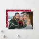 Moderne Urlaubsfotokarte mit "Frohe Weihnachten", die in einem weißen handgeschriebenen Drehbuch über Ihr horizontales Foto gezeigt wird. Personalisieren Sie die Vorderseite der Weihnachtskarte mit Ihrem Familiennamen und dem Jahr. Die Karte kehrt zu einem roten und weißen Schneeflockenmuster zurück.