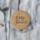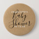 Rustikaler Baby-Duschknopf mit einem rustikalen, modernen schwarz-weißen Text auf einem rustikalen Krafthintergrund. Lassen Sie sich mit Ihren speziellen Babydusche-Details persönlich verwöhnen. Entwickelt von Thisisnotme©