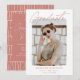 Trendy Graduierungsparty lädt mit dem Foto des Absolventen auf der Vorderseite gerahmt durch eine weiße raue Grenze. "Graduate" wird in einer dunkelrosa Rose-Signatur mit dem Namen, dem Namen der Schule und dem Jahr des Abschlusses angezeigt, wie unten gezeigt. Die moderne Graduierungsparty lädt die Reverses dazu ein, Ihre Graduiertendetails mit einer einzigartigen dunklen Rose in Rosa und Weiß gestanzten Linienführung zu präsentieren. Diese Foto-Abschlussfeier lädt sowohl für Uni-Abschluss- als auch für Highschool-Party ein.