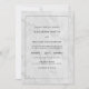 Diese eleganten Einladungen sind mit einem Hintergrund aus weißem Marmor, einem silbernen Rahmen mit minimalem Imitat und schwarzem Text gestaltet.
