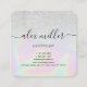 Elegante und hübsche Friseurkarte mit Imitaten aus silberfarbenem Glitzer, holografischer Textur, Schere und elegantem kalligraphischen Schriftart.