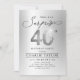 Moderne Shhh, es ist eine überraschende 40. Geburtstag Party Einladung mit stilvollem Drehbuch und Imitats Silber Glitzer Nummer 40 und Ihr Party Details auf silberem Hintergrund, einfach und elegant, große Überraschung Erwachsenengeburtshöhe für Damen und Herren. Die schwarze Hintergrundfarbe kann in jede beliebige Farbe Ihrer Wahl geändert werden.