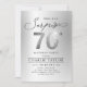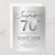 Moderne Shhh, es ist eine überraschende 70. Geburtstagsfeier Einladung mit stilvollem Drehbuch und Imitats Silber Glitzer Nummer 70 und Ihre Party-Details über silberne Hintergrund, einfach und elegant, große Überraschung Erwachsenengeburtshöhe für Damen und Herren. Die schwarze Hintergrundfarbe kann in jede beliebige Farbe Ihrer Wahl geändert werden.