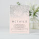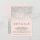 Moderne Silberne Glitzer Rosa Hochzeitsdetails Begleitkarte