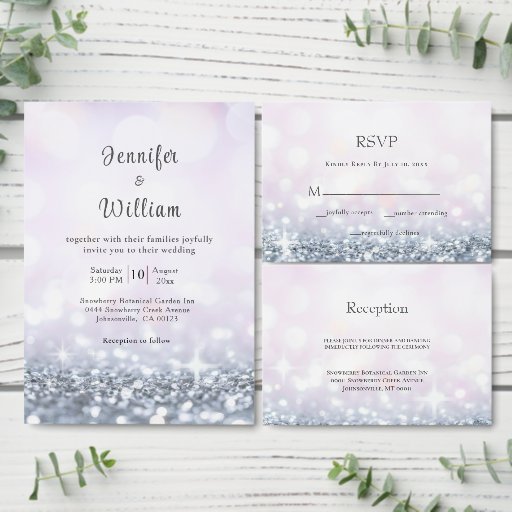 Moderne Silberne Lila Glitzer Hochzeit RSVP Karte