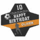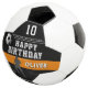 Moderne Silhouette glücklich zum Geburtstag Fußball Ball. Feiern Sie stilvoll mit diesem eleganten Fußball, Fußball-Design! Dieses sportliche Design mit schwarz-orangefarbenen Farbtönen, feinem Buchstaben und realistischen Fußballgrafiken ist perfekt für jeden Fußballfan geeignet. Das Design zeigt dynamische Player-Silhouetten, ein Fußballbild und Streifen Details. Ob für ein Kind oder einen Erwachsenen-Fußball-Liebhaber, dieses erstklassige und anpassbare Design ist ein Zuhause-Run für jedes Geburtstagsfest!