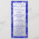 Dieses wunderschöne Hochzeitsprogramm zeigt Ihre Details auf reinem Silber gerahmt mit einem klassischen Blumenmotiv in Silber auf kontrastierendem königsblauen Hintergrund. Sie können mit dem Link "Individuell anpassen" vollständig personalisieren. Das Hotel ist Teil einer eleganten Hochzeitssuite, die eine Einladung, einen Umschlag, ein Menü und viele andere Dinge beinhaltet.