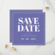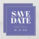 Ein modernes, kühn Save the Date Design mit einem schlanken silbernen Glitzer-Rahmen auf der Vorderseite und einem silbernen Glitzer-Herz im Hintergrund. Die Hintergrundfarbe ist die Farbe des Jahres 2022, eine trendige Version von periwinkle, die zu allem passt. Fügen Sie Ihre Namen, Initialen und das Hochzeitsdatum der Karte hinzu und senden Sie sie an Ihre Freunde und Familien.
