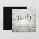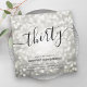 Elegantes Glam Silver Glitzer Lights 30. Geburtstagsschreiber-Einladungsvorlage mit glitzernden Silberleuchten und modernem Typografie-Skript.