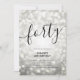 Elegantes Glam Silver Glitzer Lights 40. Geburtstagsschreiber-Einladungsvorlage mit funkelnden Lichtern und modernem Typografie-Skript.