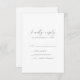 Diese moderne Silber-Script einfache RSVP-Karte ist perfekt für eine minimalistische Hochzeit. Das schlichte silbergraue Farbdesign zeichnet sich durch eine einzigartige industrielle Schrift mit modernem boho Stil aus. Anpassbar in jeder Farbe. Behalt das Design minimal und elegant, wie es ist, oder personalisiere es durch Hinzufügen von eigenen Grafiken und Kunstwerken.