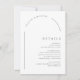 Minimalistische Hochzeitsdetails Karte enthält ein modernes, chic Bogen-Fenster in Schwarz und Weiß, mit QR-Code auf der Rückseite, elegant und einfach, großartig für eine moderne, klassische Hochzeit.