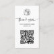 Moderne minimalistische Skripte und QR-Code in schwarz-weiß Business Auftrag danke. Fügen Sie Ihre sozialen Medien hinzu. Mit einem eleganten Script-Schriftart können Sie alle Farbenvarianten bearbeiten, Ihr Logo hinzufügen. 5 Sterne Rezension für Ihre Kunden.