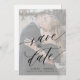 Elegante romantische, elegante, handgeschriebene Kalligrafieschrift Schwarz-Weiß-Hochzeit speichern Sie die Datumsvorlage mit Ihrem benutzerdefinierten Foto und weißem transparenten Overlay. ++++++++++ Einfach mit Ihren Details und Verlobungen auf beiden Seiten personalisieren! +++++++++++ Geeignet für jede Saison klassische Hochzeiten.